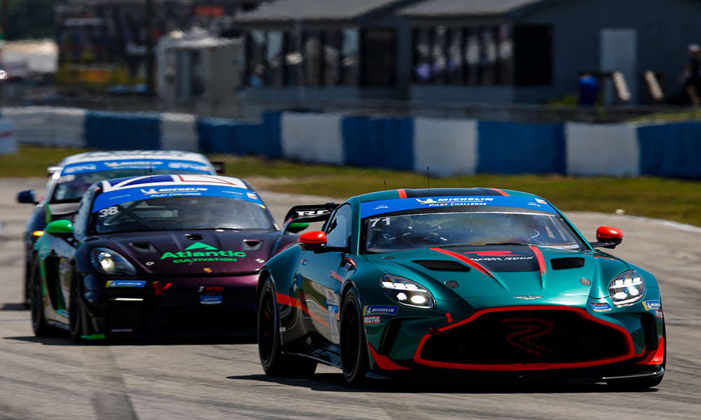 Aston Martin went 1-2 with Rebel Rock Racing’s Frank DePew, Robin Liddell and Andrew Davis winning in their No. 71 Aston Martin AMR Vantage GT4 Evo.