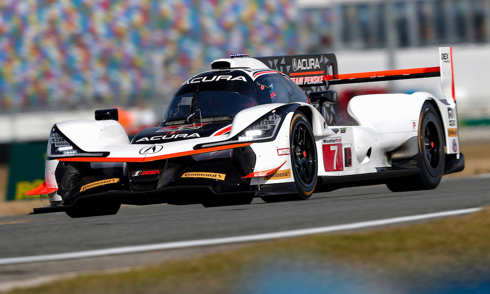Helio Castroneves set the pace in Practice 2 for the Rolex 24 at Daytona on Thursday afternoon driving the No. 7 Acura Team Penske ARX-05 DPi.