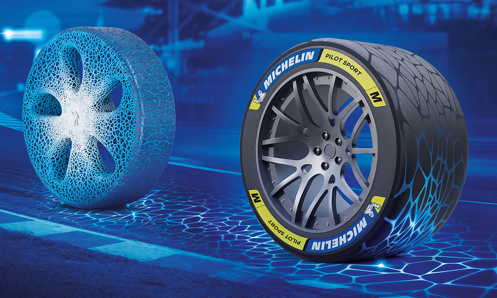 It’s inspired by Michelin’s Vision concept tire—an illustration of the company’s long-term sustainable development model and its roadmap toward using 100 percent sustainable materials by 2050.