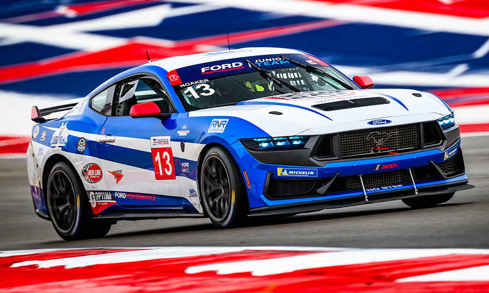 Robert Noaker picked up his ninth Mustang Challenge victory out of nine races this season in a mixed-condition Race 1 at Circuit of The Americas.