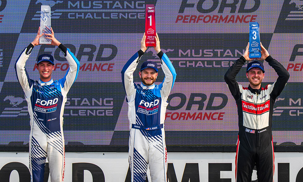 Robert Noaker swept the Mustang Challenge weekend at Road America with his Race 2 win on Sunday, leading every session and every racing lap across the pair of rounds in Wisconsin.