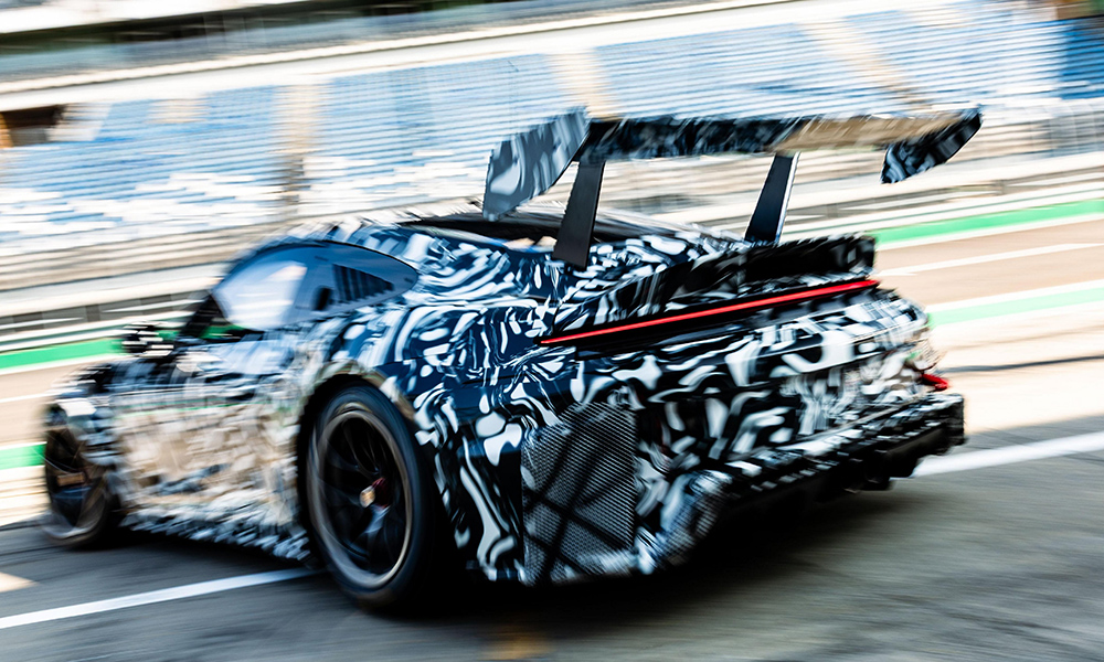 Based on the current Type-992.2 generation of the 911 road car, the new race car, currently only seen in a camouflaged livery, has already “largely competed” its development phase according to a statement from the German manufacturer.