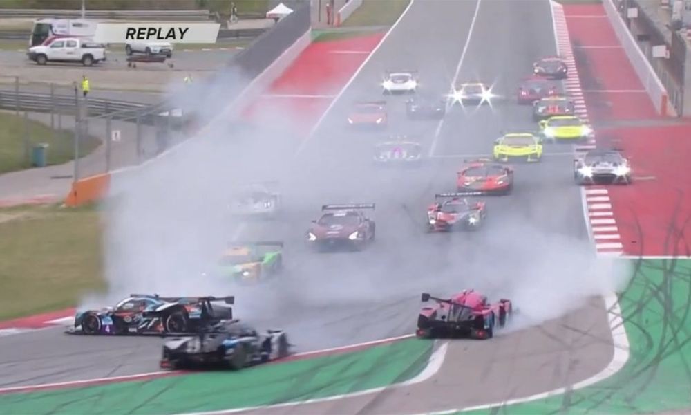 The DKR Ligier then crashed into both the No. 17 CLX Motorsport car of Paul Lanchere and the No. 68 M Racing entry of Nick Adcock.