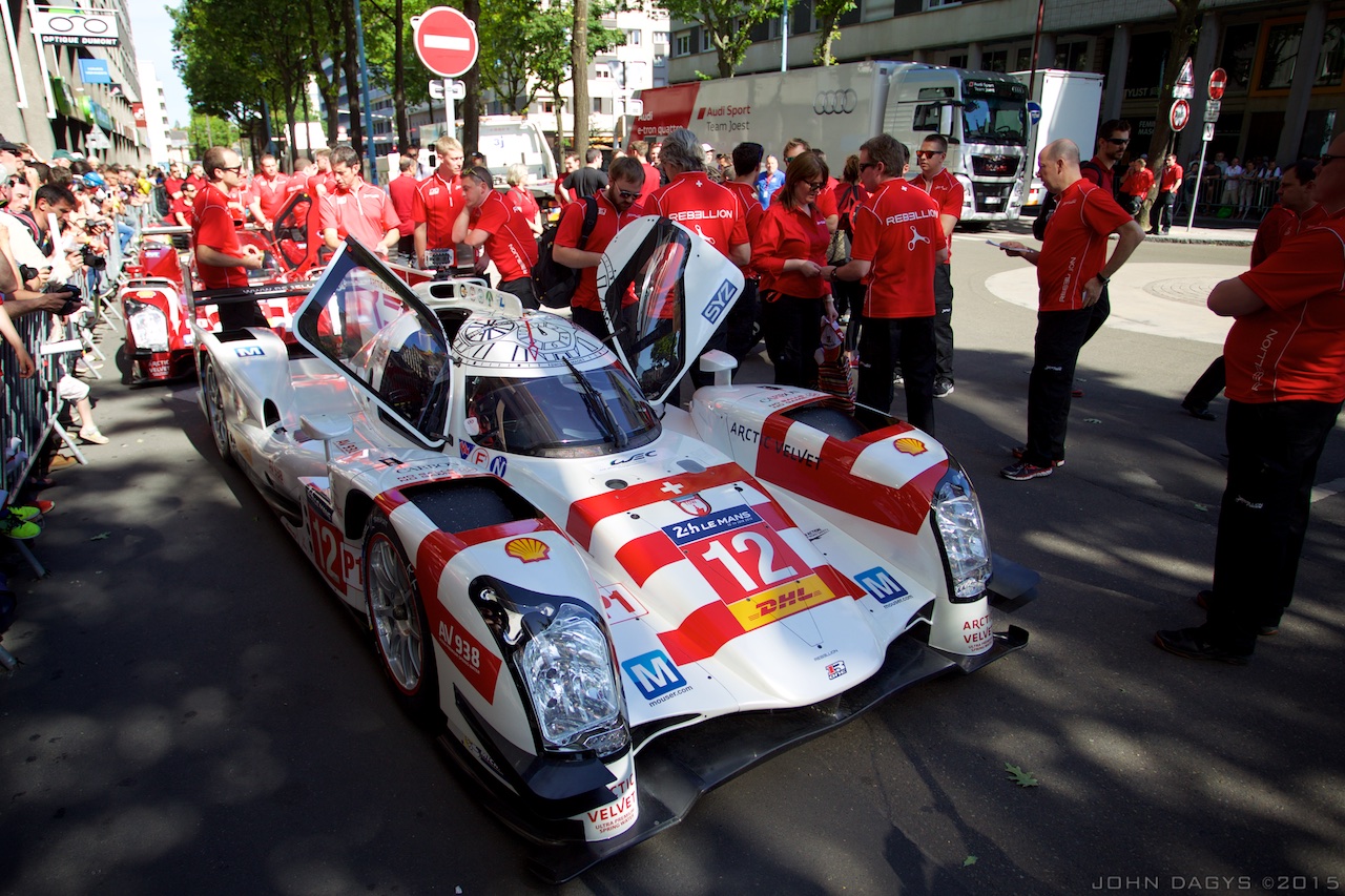 ***Lucas di Grassi and Loic Duval only just arrived in Place de la Republique mere moments before their No. 8 Audi R18 e-tron quattro was due to go through scrutineering, as the earliest of 10 drivers arriving from the FIA Formula E Championship race in Moscow. “We took an 8 o’clock flight, landed Charles de Gaulle, took my car, parked, ran to get my overalls and arrived,” di Grassi told Sportscar365.