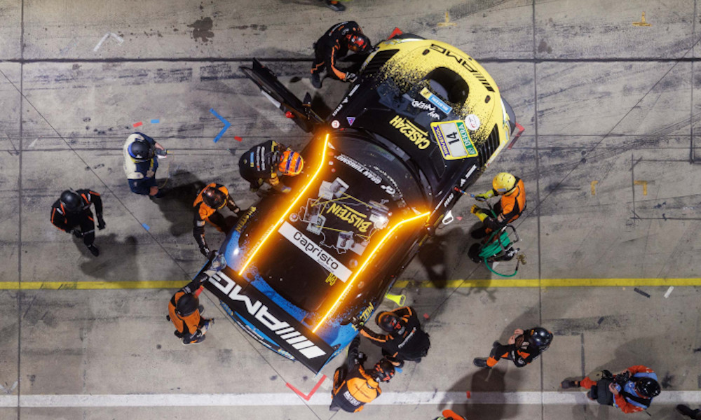 The Mercedes-AMG woes temporarily elevated the second Falken Porsche to fourth, until Dorian Boccolacci suffered a right-rear puncture and lost time crawling back to the pits.