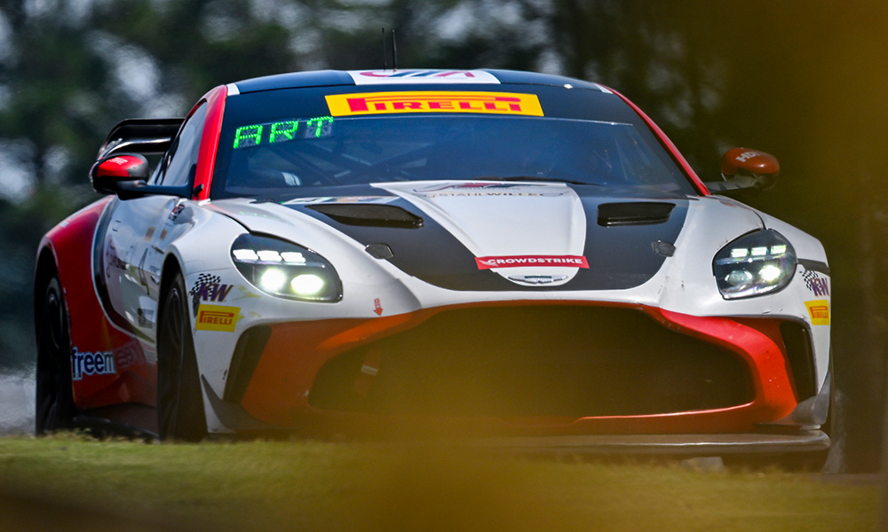 Arthur’s 1:28.998 benchmark lap time, set early in the 45-minute practice session, was enough to top the overall times before handing his Silver class No. 4 Aston Martin Vantage GT4 Evo off to Mike David Ortmann, with the Canadian outfit seeing both of their Aston Martins sit atop the times for most of second practice.