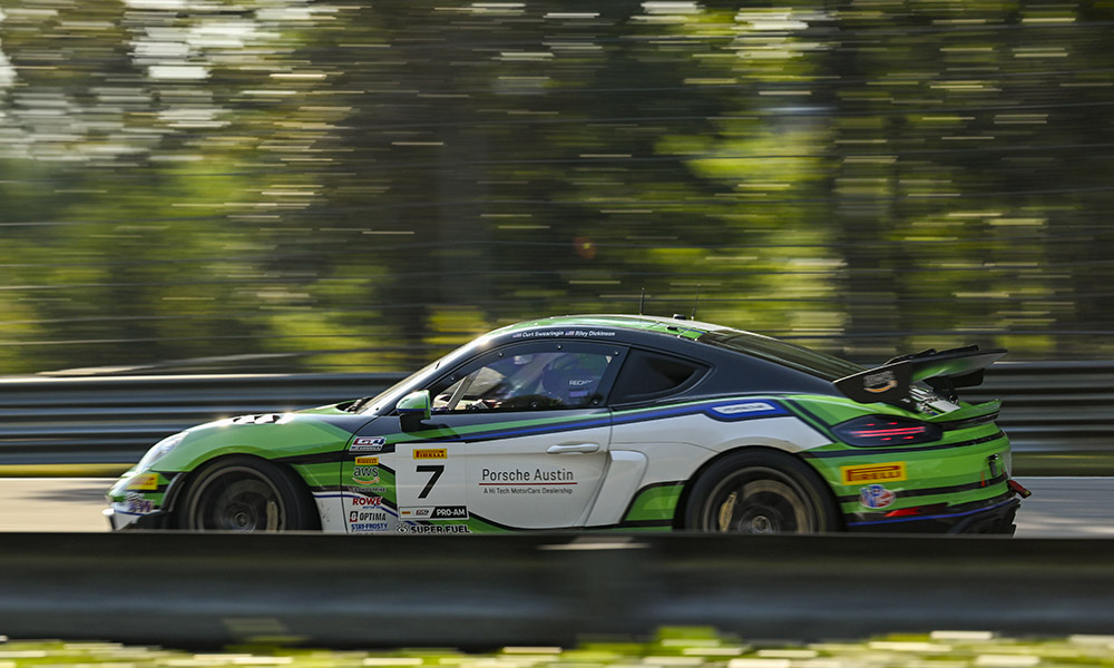 Riley Dickinson led the way in the first Pirelli GT4 America practice session at Barber Motorsports Park ahead of this weekend’s triple-header.