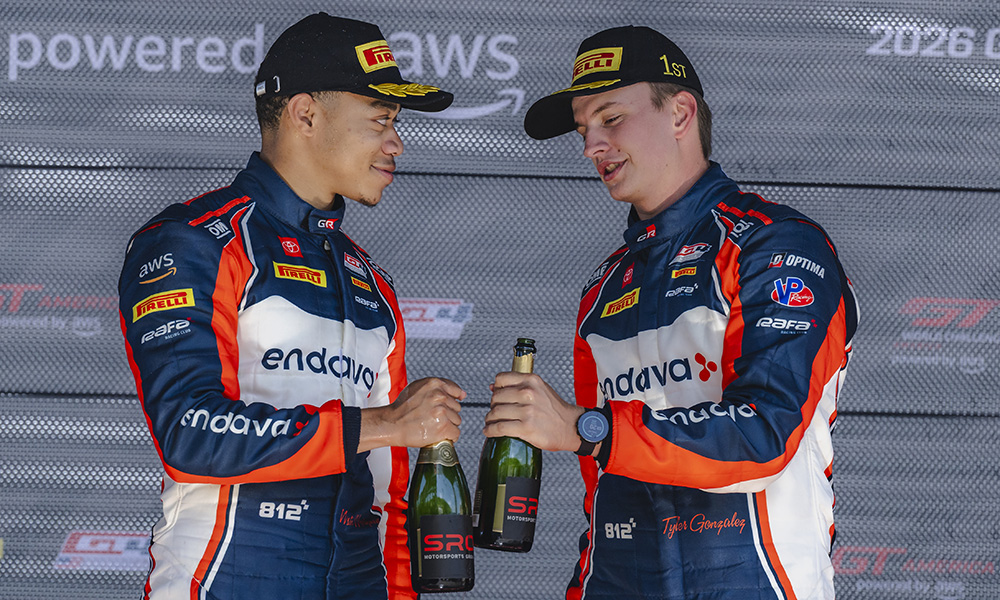 James Clay, in the No. 36 BimmerWorld BMW, also saw contact with the wall in the opening laps, while the No. 7 ACI Motorsports Porsche 718 Cayman GT4 RS Clubsport had a right-front tire puncture on Yves Baltas’ out-lap following their driver change.