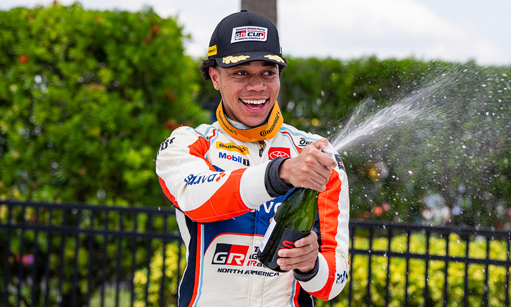After podium finishes in the first three of four rounds this season in his No. 13 Toyota GR86 Cup car, the BSI driver took his maiden series win in a weekend he would go on to sweep at Sebring International Raceway, before winning again in a hard-fought Race 2 at Virginia International Raceway.